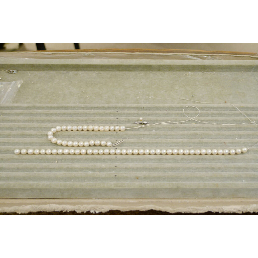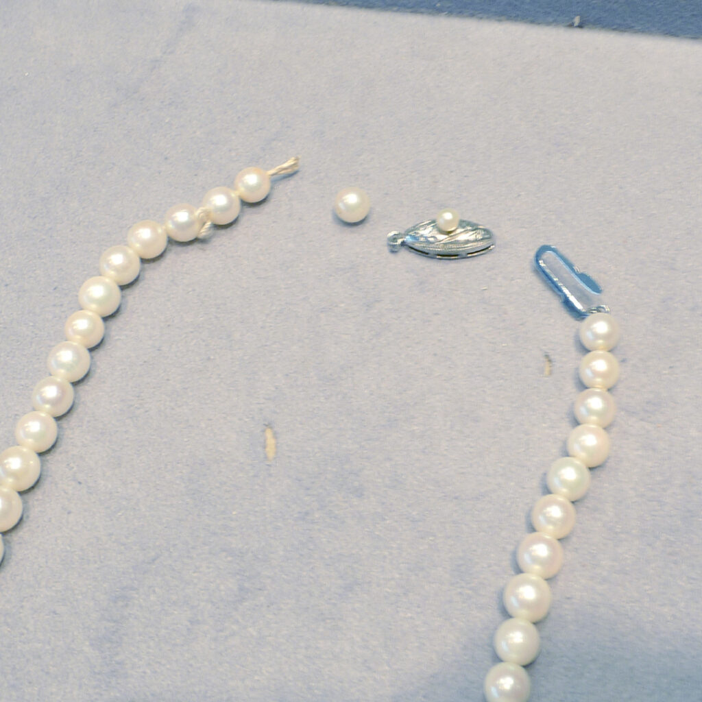 創業100年の当店では、切れる事のないステンレス製ワイヤーを使用してパールの糸替えを行っております。